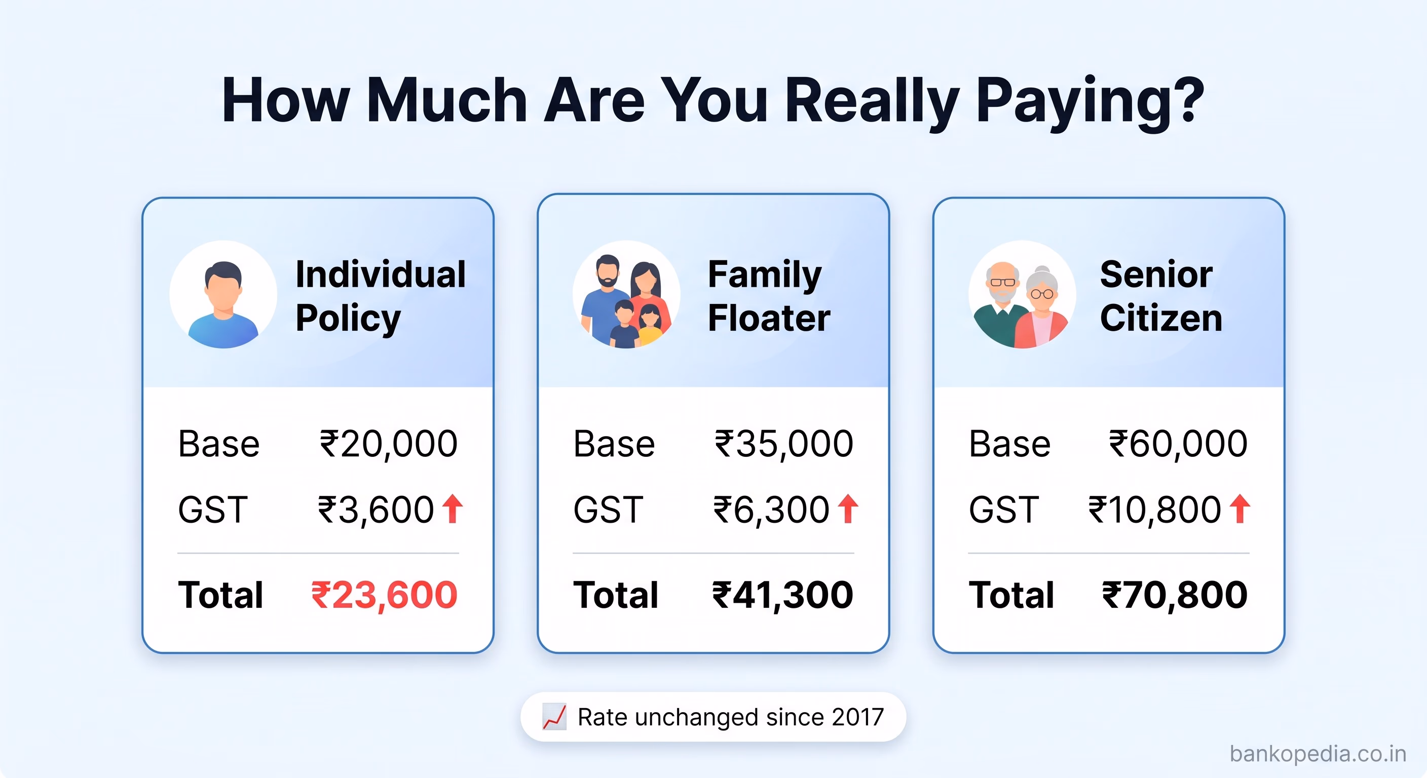 At 18% GST, a senior citizen paying ₹60,000 in an annual base premium is handing over an additional ₹10,800 in tax alone. For retirees living on fixed incomes — such as pensions, interest from fixed deposits, or modest rental income — this is a substantial and recurring outflow that compounds every year as premiums naturally rise with age bands.