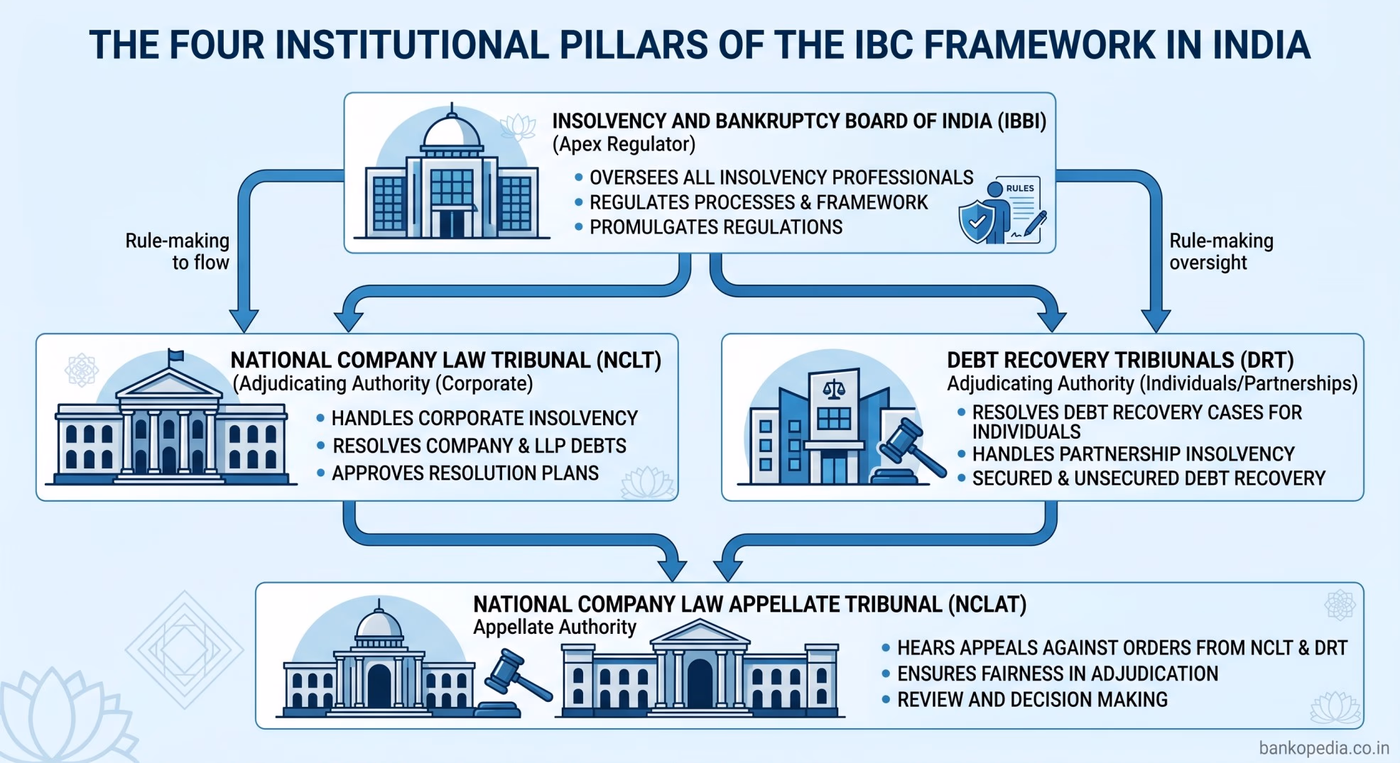 Insolvency and Bankruptcy Board of India (IBBI): The apex regulatory body that oversees insolvency professionals, insolvency professional agencies, information utilities, and the overall functioning of the Code.